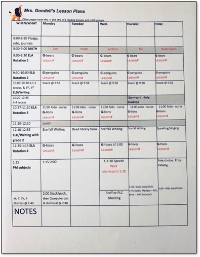 Post #4: Schedule/Lesson Plans for a Substitute Teacher.